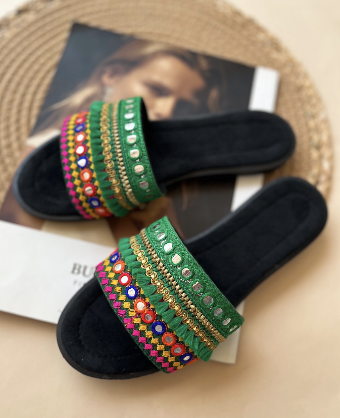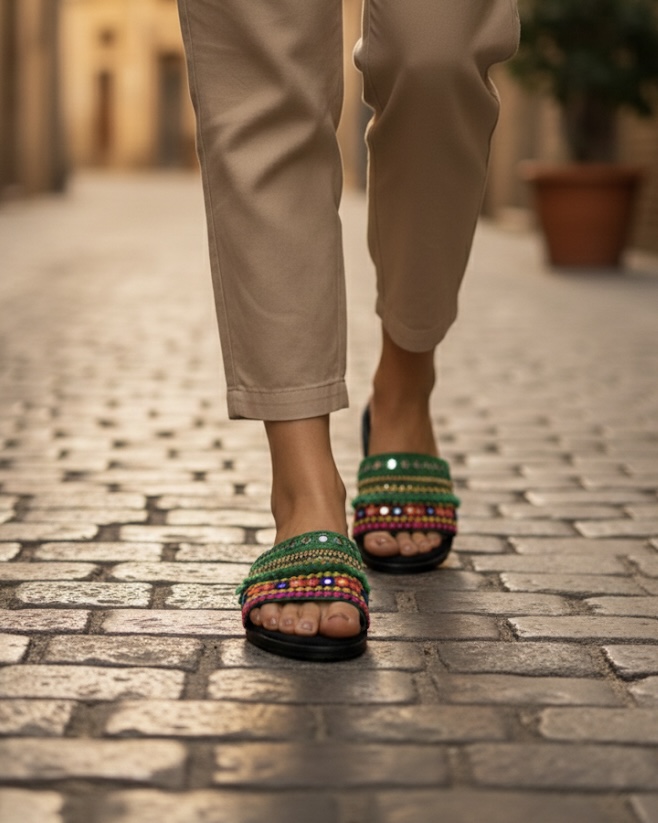 صندل زنانه سوزندوزی مدل یاشیل Sandal Zanane Yashil Zimacrafts