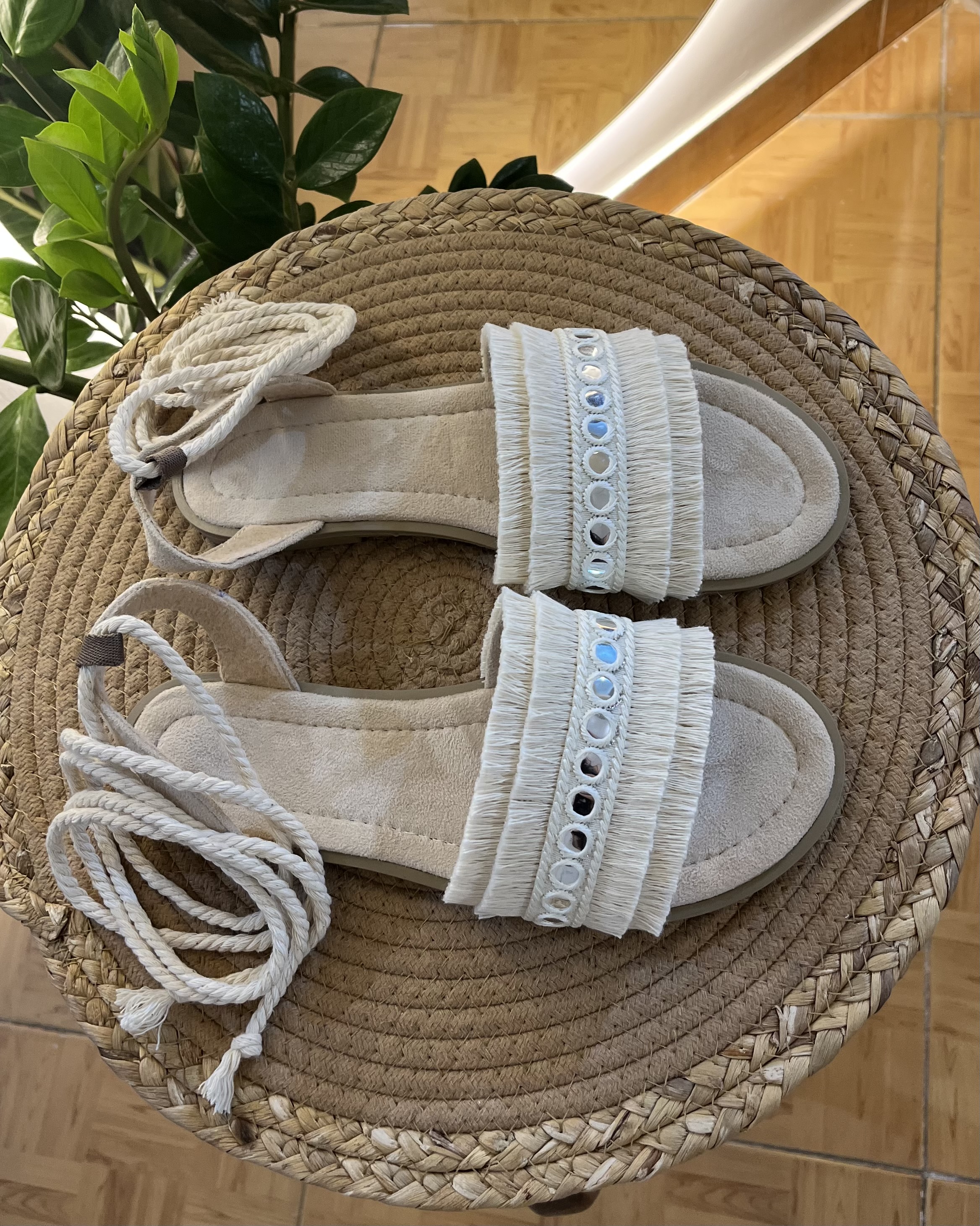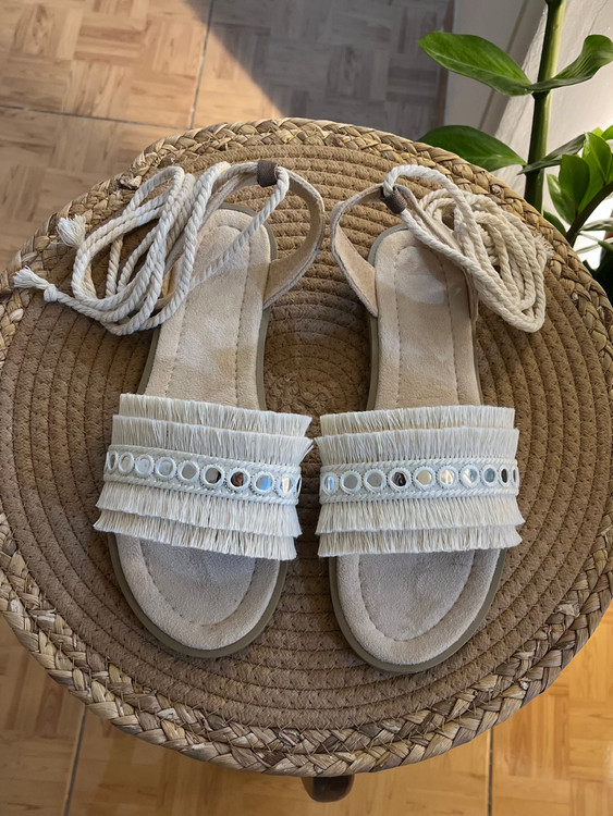 بلندی بندها تا زانو هست،اگر با بند کوتاه مد نظرتون هست تو قسمت توضیحات ذکر کنید با بند کوتاه می خواهید(دور مچ پا )